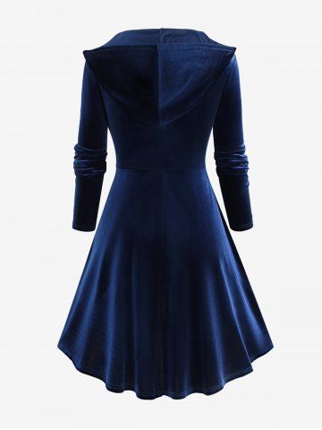 Plus Size Glitter Lace Up Fluffy Ball Velvet A Line Hooded Christmas Patchwork Dress