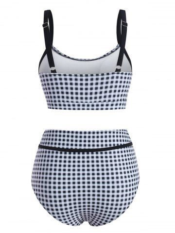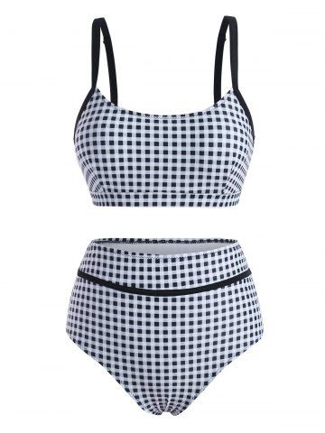 Gingham Tanque de alta altura Bikini Swimwear - Negro - Negro
