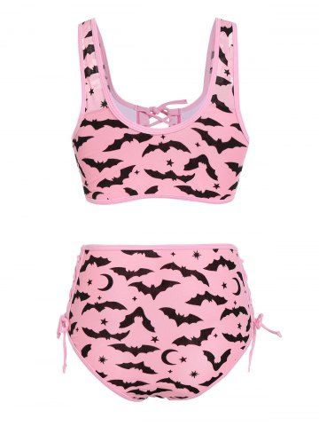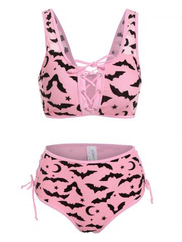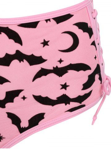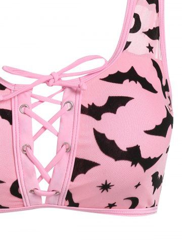 Set de bikini acolchado con cordones de malla de murciélago - Rosa Claro - Rosa Luz