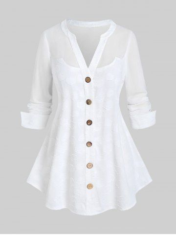 Blusas de Talla Grande > Camisa Talla Extra Acanalado Manga Larga