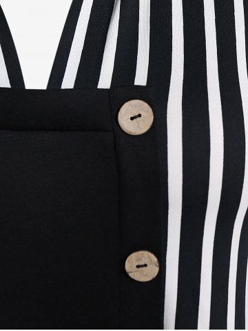 a*****y5Plus Size Mock Button Patchwork Striped TopColor: BLACK Size: 2X | US 18-20This is so fun -- I love anime and this reminds me of some of their outfits. I ordered this once size larger than I needed and so it fits a little baggy. Go with what you know -- The materials is mixed -- one side seems almost silky an the otherside is a soft polyester. More of a long shirt to me --- but could easily be worn as a mini if you are bold enough. Great purchase.