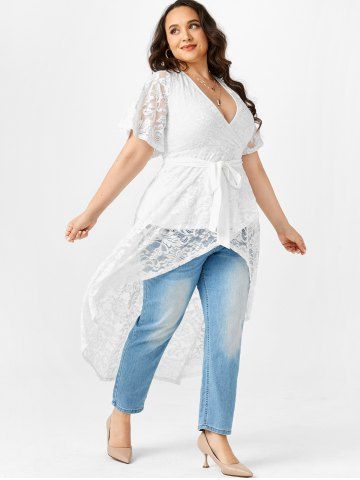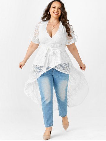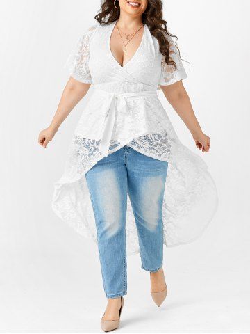 Plus Size Lace High Low Longline Surplice Top