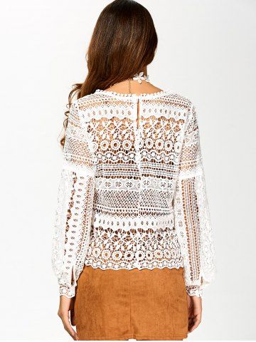 Blusa Encaje Volantes y Manga Abombada - Blanco - Blanco