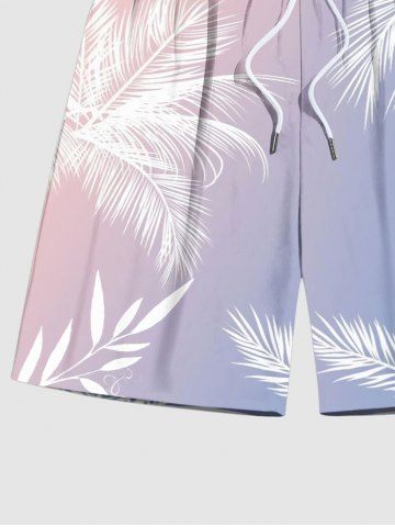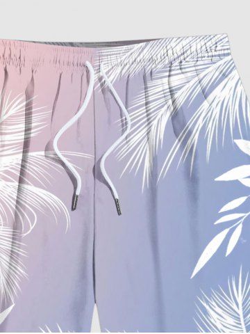Plus Size Ombre Tropical Leaf Print Hawaii Beach Shorts For Men - Purpúreo Claro - Luz Púrpura
