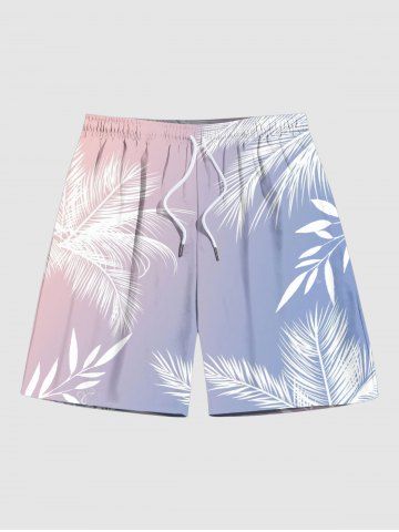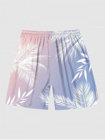 Bottoms > Plus Size Ombre Tropical Leaf Print Hawaii Beach Shorts For Men