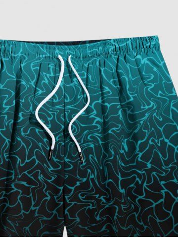 Plus Size Ombre Water Ripples Print Hawaii Beach Shorts For Men - Negro - Negro