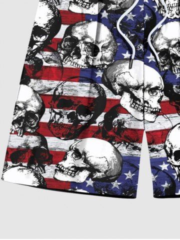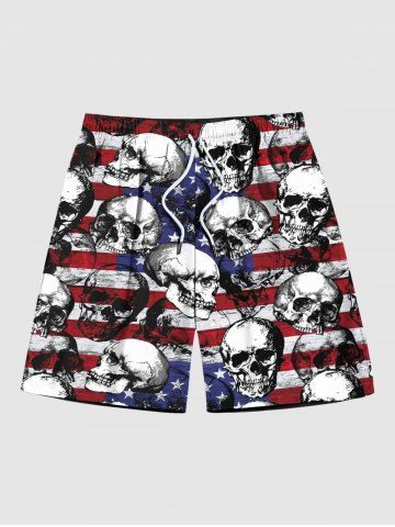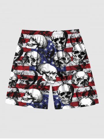 Plus Size Patriotic American Flag Skulls Print Beach Shorts For Men - Multicolor-a - M