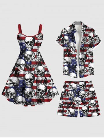 Bottoms > Plus Size Patriotic American Flag Skulls Print Beach Shorts For Men