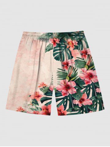 Bottoms > Plus Size Tropical Hibiscus Flowers Leaf Print Hawaii Beach Shorts For Men