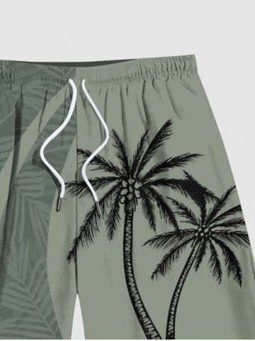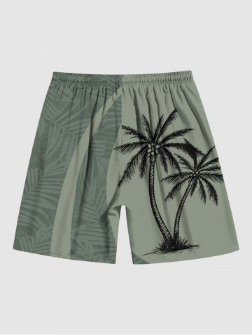 Plus Size Tropical Leaf Coconut Tree Print Beach Shorts - Verde Oscuro - 7xl