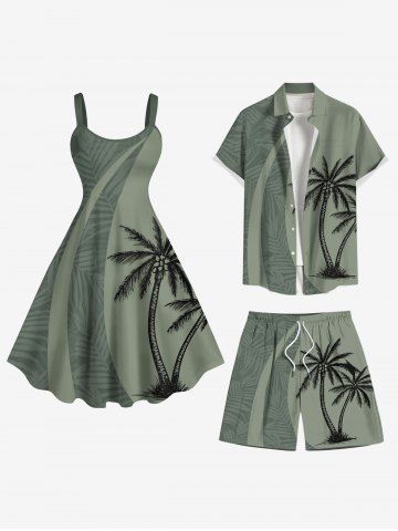 Coconut Tree Tropical Leaf Print Plus Size Matching Hawaii Beach Outfit For Couples
