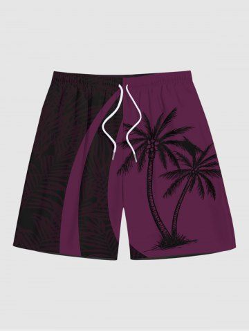 Plus Size Tropical Leaf Coconut Tree Print Beach Shorts - Color Rojo Oscuro - 4xl