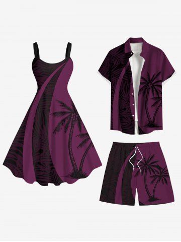 Coconut Tree Tropical Leaf Print Plus Size Matching Hawaii Beach Outfit For Couples