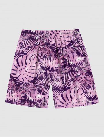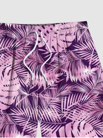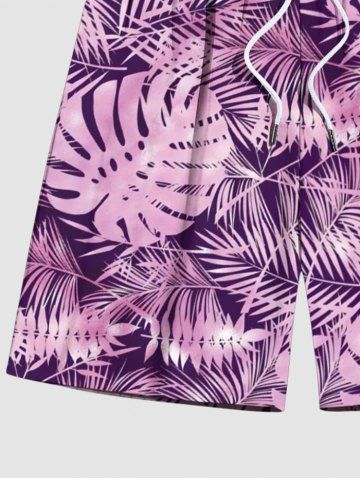Plus Size Tropical Leaf Print Hawaii Beach Shorts For Men - Rosa Claro - Rosa Luz