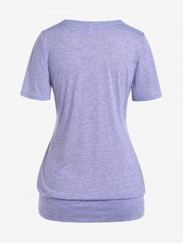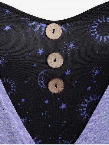Blouson Camiseta de Talla Grande de Estampado de Luna de Color Bloque - Purpúreo Claro - Luz Púrpura