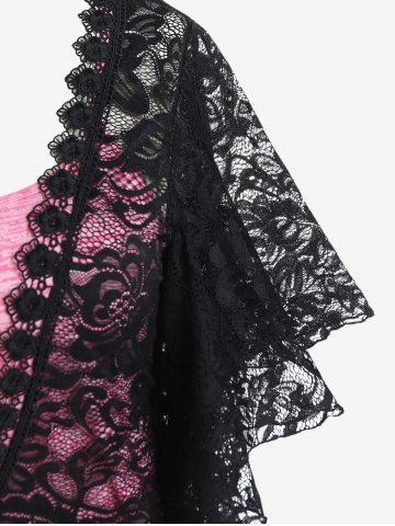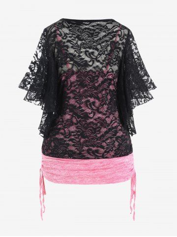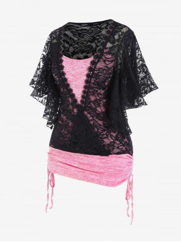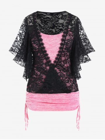 Camisetas de Talla Grande > Camiseta con Encaje de Talla Grande con Estampado de Mariposa