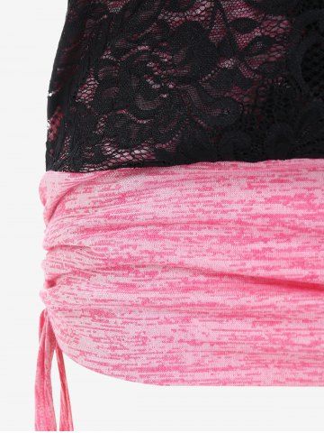 Camiseta con Encaje de Talla Grande con Estampado de Mariposa - Rosa Claro - Rosa Luz