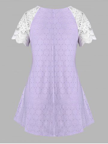 Camiseta con Incrustaciones de Encaje de Talla Grande - Purpúreo Claro - Luz Púrpura