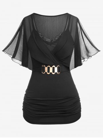 a*****95Plus Size Butterfly Sleeves Lace Panel Surplice 2 in 1 TeeColor: BLACK Size: 4X | US 26-28I like this shirt it is great for a professional look or a night on the town
