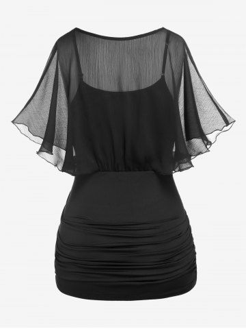 R*****r4Plus Size Crisscross Strappy Chiffon Butterfly Sleeve Ruched TopColor: BLACK Size: 2X | US 18-20I like the sleeves and the neck a lot, but the body of the shirt is tighter than I would like. If fits snug to the body.