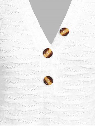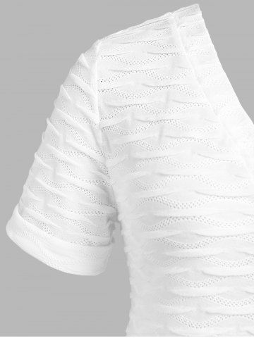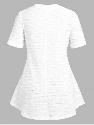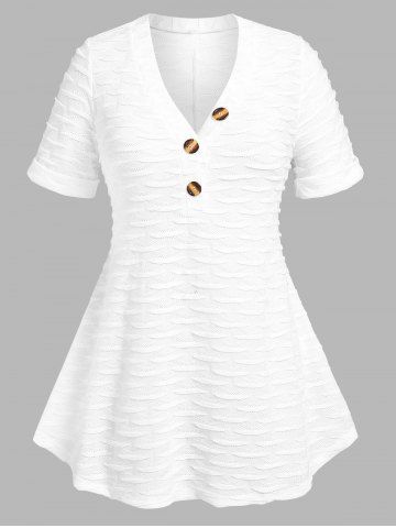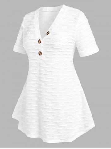 Camiseta Cuello V Diseño Tejido Tamaño Plus - Blanco - Blanco