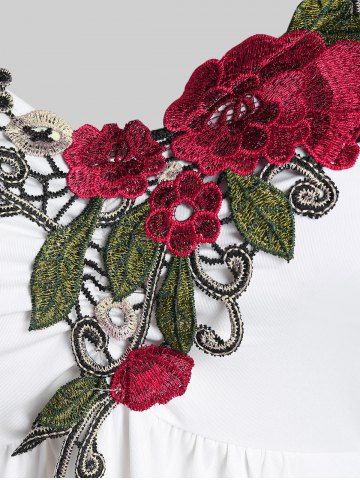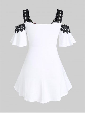 Camiseta de Aplicación de Flor con Puntilla Escotada de Hombros Al Aire de Talla Extra - Blanco - Blanco