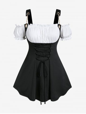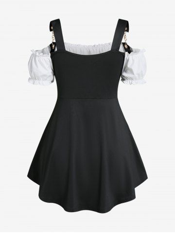 Camisetas de Talla Grande > Camiseta de Hombros Al Aire con Cadenas de Color Bloque
