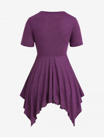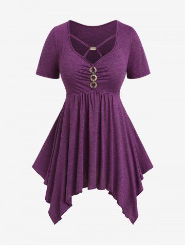 Plus Size Lace Trim Ruched Hollow Out Short Sleeves T-shirt