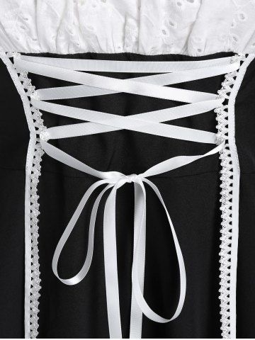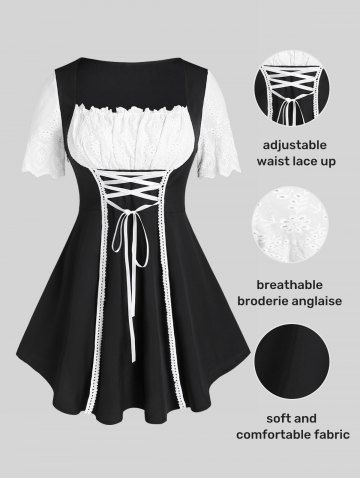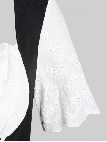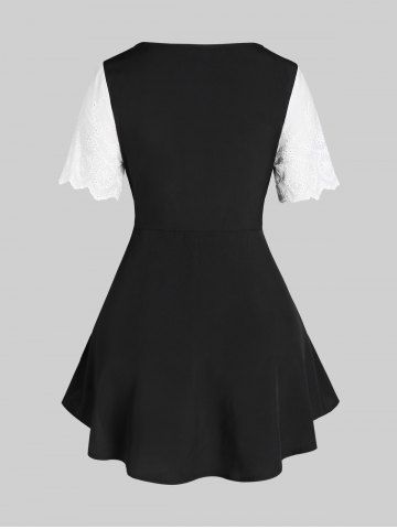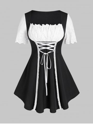 Camiseta de Talla Grande de Encaje de Bloqueo de Color - Negro - Negro