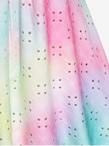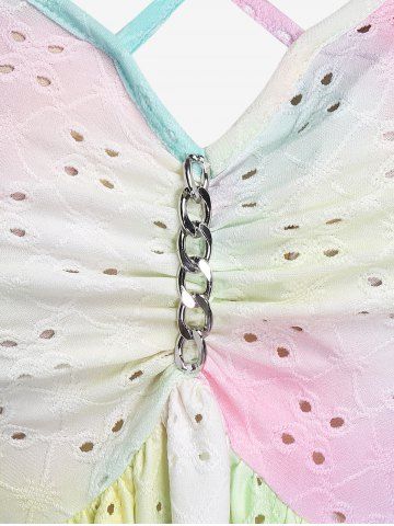 Plus Size Broderie Anglaise Halter Backless Tie Dye Tank Top