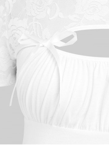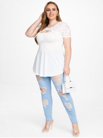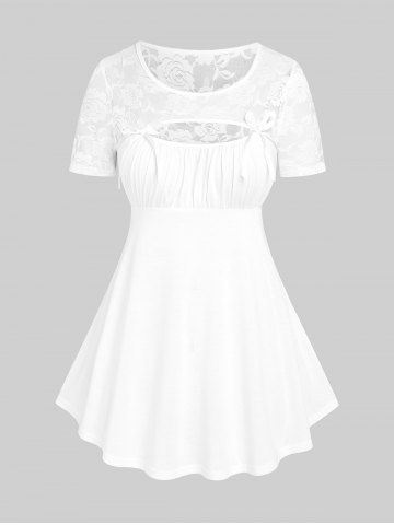 S*****a5Plus Size & Curve Cutout Lace Panel Bowknot Tunic TeeColor: WHITE Size: 1X | US 14-16Muy preciosa y cómoda. Sienta genial y la calidad es muy buena. Una de las prendas más bonitas...tanto me gustó que tengo 3 en distintas tallas.