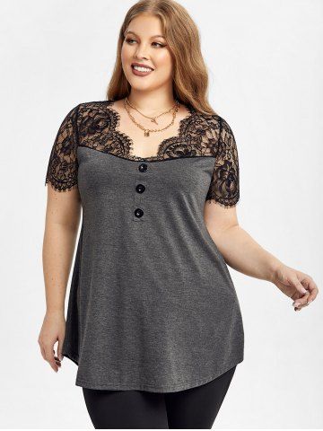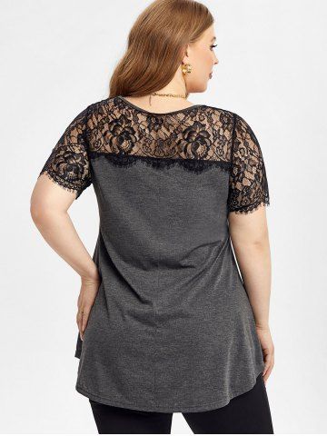 Camisetas de Talla Grande > Camiseta en Talla Extra de Encaje Trasparente con Mangas Cortas