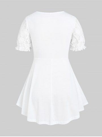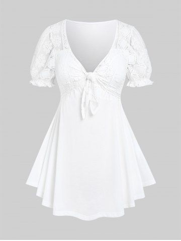 Camiseta en Talla Extra Panel de Encaje de Nudo de Lazo - Blanco - Blanco