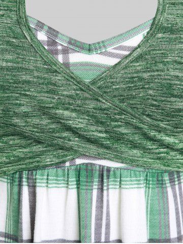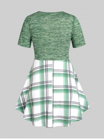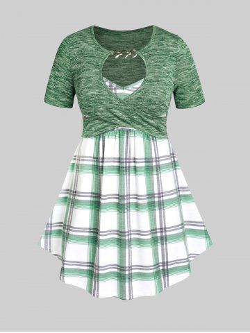 Camiseta Talla Extra 2 en 1 Bolsillo de Ojo de Cerradura a Cuadros - Verde - Verde