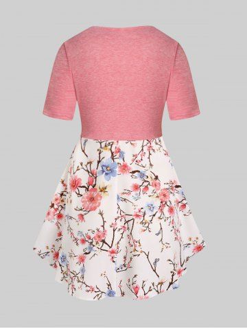 Plus Size Floral Print Faux Twinset Irregular T Shirt