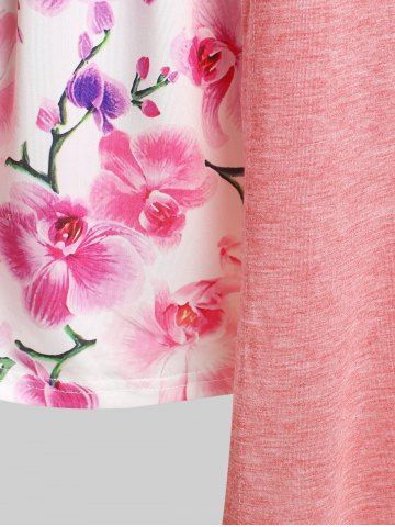 Camisetas de Talla Grande > Camiseta Talla Extra 2 en 1 Manga Raglán Estampado Floral de Étnico