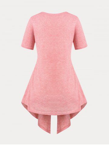 d*****n5Plus Size Floral Print Faux Twinset Irregular T ShirtColor: LIGHT PINK Size: L | US 12I really like this one too. It's thin and light weight. Very charming and petite looking, very feminine piece. The over piece is like cotton. Very soft. The front shirt piece is another type of fabric that I don't know but it feels good. This is a large. The front shirt piece doesn't go all the way around. Just to the sides and then it's sewn into the other piece. The only adjustment that I had to make was to pin up the spaghetti straps to lift up the front more. I ordered this on July 7, 2022 and received it yesterday on July 21, 2022. I give you the exact date and year so that way you know when it was and not guessing the year or anything so you know exactly how many days. I live in Maryland USA if that helps anyone. Rosegal is far away from me. I am 5 foot and 2 inches and I weigh 160 lbs. My belly sticks out more than I want but in person you can't tell. I wear a size 12= 13 jeans and you can see how nicely this lays in my hips. But grandmomma got back and I can't hide it. lol. As I am with all of my items, I recommend this shirt. You can wear it casually or a dress down. Wear it basically anywhere. The outer layer won't go over my chest area. That part is too small. But I like the open look.