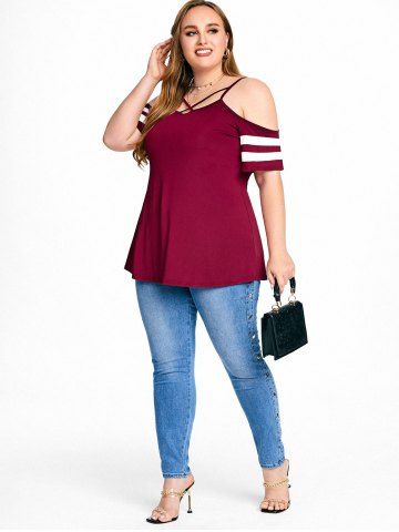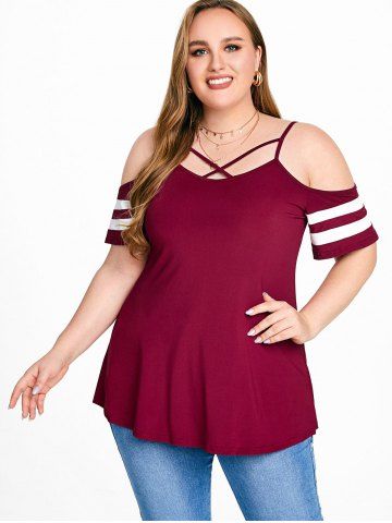 Camiseta Talla Extra Color Bloque Hombros Descubiertos - Color Rojo Oscuro - 4x | Us 26-28