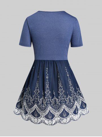 m*****g4Plus Size Flower Embroidered Ruched T-shirtColor: DEEP BLUE Size: 2Xmy favorite shirt/dress This would look cute with leggings and boots. The stitching is cheap and easy to rip. I weigh 220-230