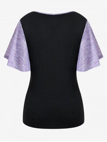 Camiseta Talla Extra Manga Campana Cuello Vuelto Color Bloque - Púrpura - Púrpura