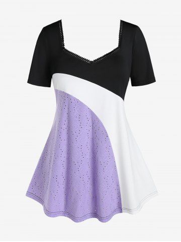 M*****l4Plus Size Cowl Neck Colorblock Flare Sleeve TeeColor: PURPLE Size: M | US 10tissus un peut mince mais conforme a la taille.