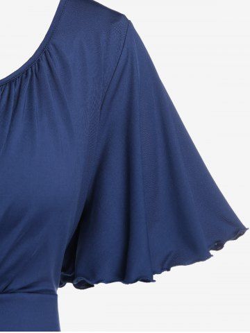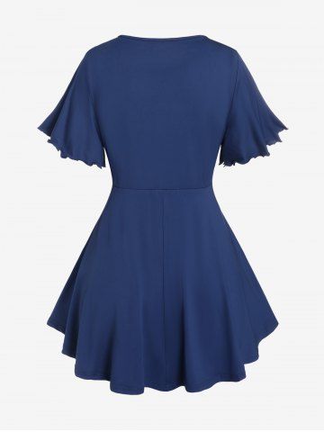 Plus Size Lettuce Ruched Keyhole Flutter Sleeves Surplice Tee