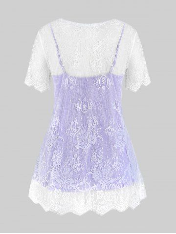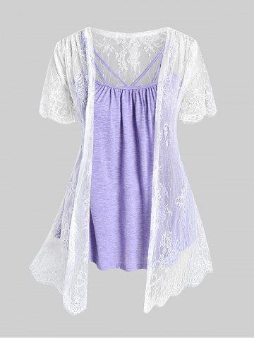 T*****y5Plus Size Two Tone Flounce High Low Hem 2 In 1 Tee with TieColor: LIGHT PURPLE Size: M | US 10Very nice sure that's good shipping fast will be ordering more as soon as more stuff is available in my size very very comfortable especially for winter time thank you l