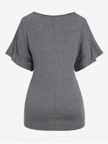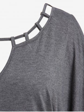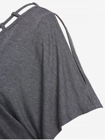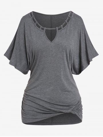 Plus Size Batwing Sleeves Hollow Out Twist Keyhole T-shirt - Gris - Gris