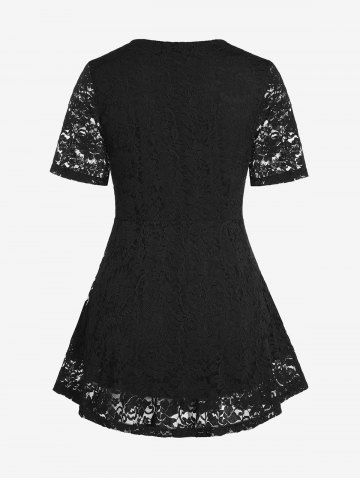 Plus Size & Curve Floral Lace Blouse - Negro - Negro