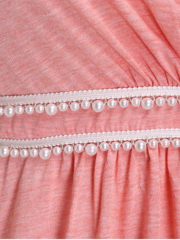 E*****y5Plus Size Lace Trim Faux Pearls Short Sleeves Surplice TeeColor: LIGHT PINK Size: 2X | US 18-20Love the beaded trim on this top! It brings a little extra pop to the white accents!