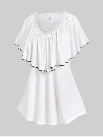 R*****r5Plus Size Lace Trim Flounce V Neck Capelet TopColor: WHITE Size: 4X | US 26-28This item fits wonderful love it so much thank you