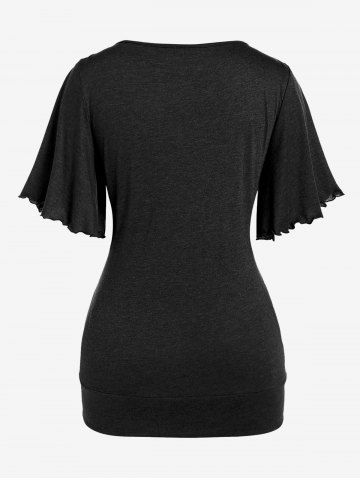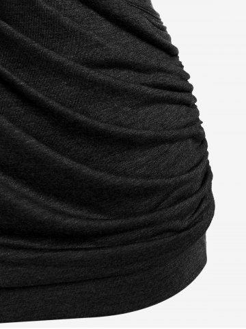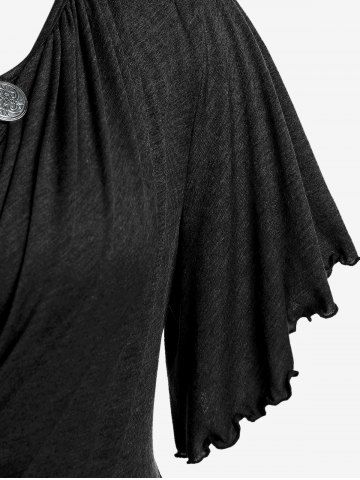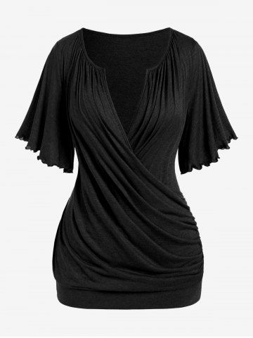 Plus Size Lettuce Ruched Chain Embellished Plunging Blouson Tee - Negro - Negro
