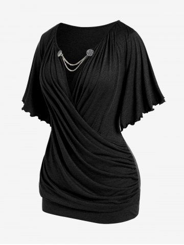 Camisetas de Talla Grande > Plus Size Lettuce Ruched Chain Embellished Plunging Blouson Tee