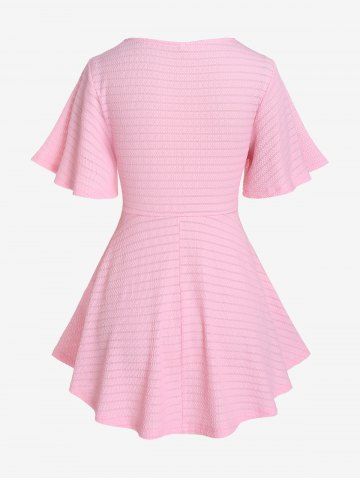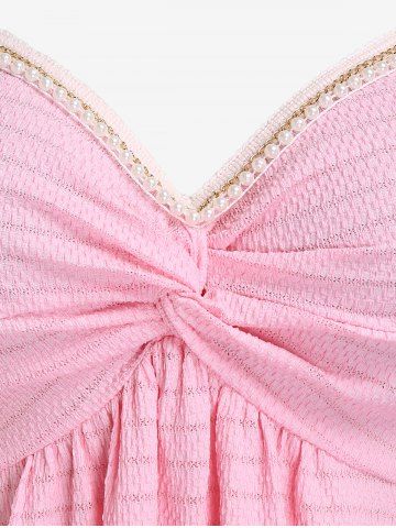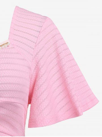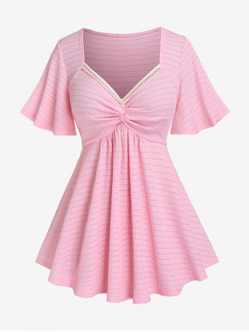Plus Size Pearls Embellished Twisted Runched Short Sleeves T-Shirt - Rosa Claro - Rosa Luz